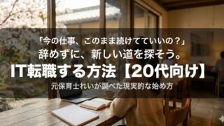 「IT転職は無理」と思っていた元保育士が語る。保育士・看護師・介護士の経験はIT業界でも活きる。資格があればいつでも戻れる安心感と、20代未経験からIT転職する方法を解説。